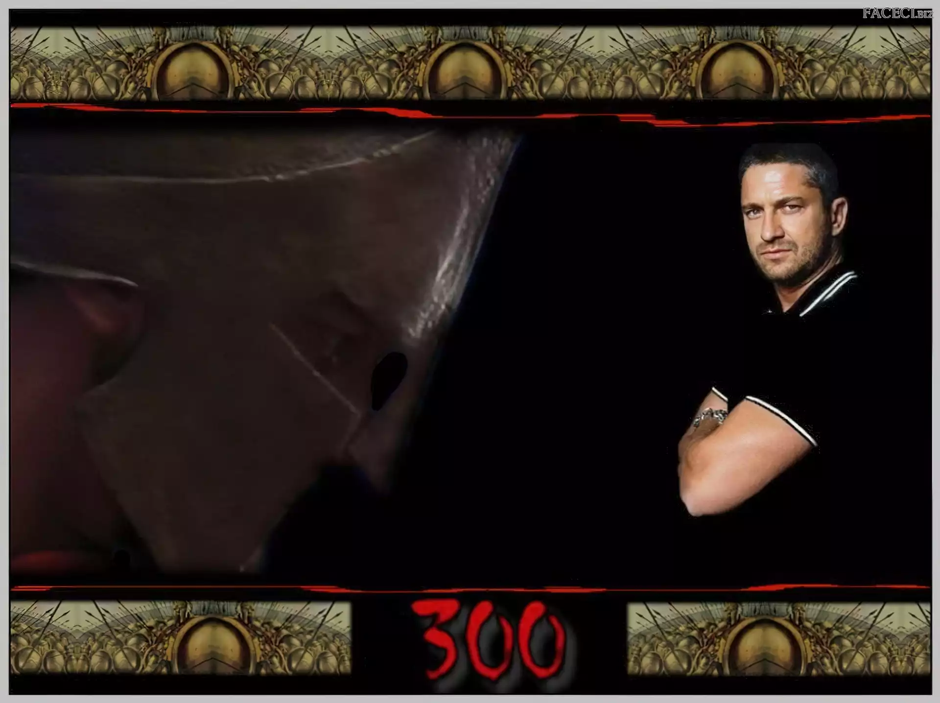 czarna koszulka, Gerard Butler, maska